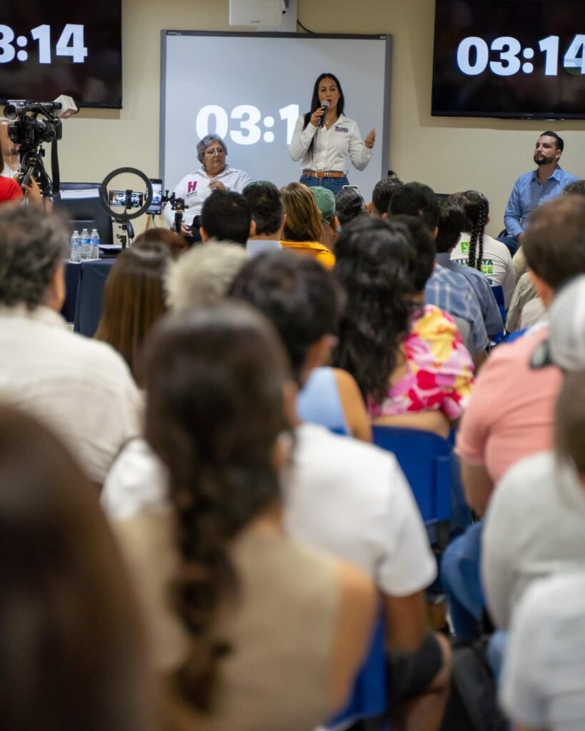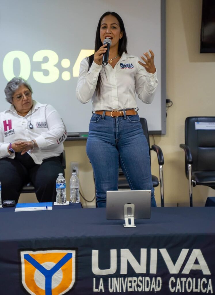 La candidata a la Presidencia Municipal por el partido Futuro, Melissa Madero, se presentó en la “Jornada Cívico Electoral», en un espacio llamado “Diálogo entre la comunidad universitaria y candidatos a presidente municipal de Puerto Vallarta”.