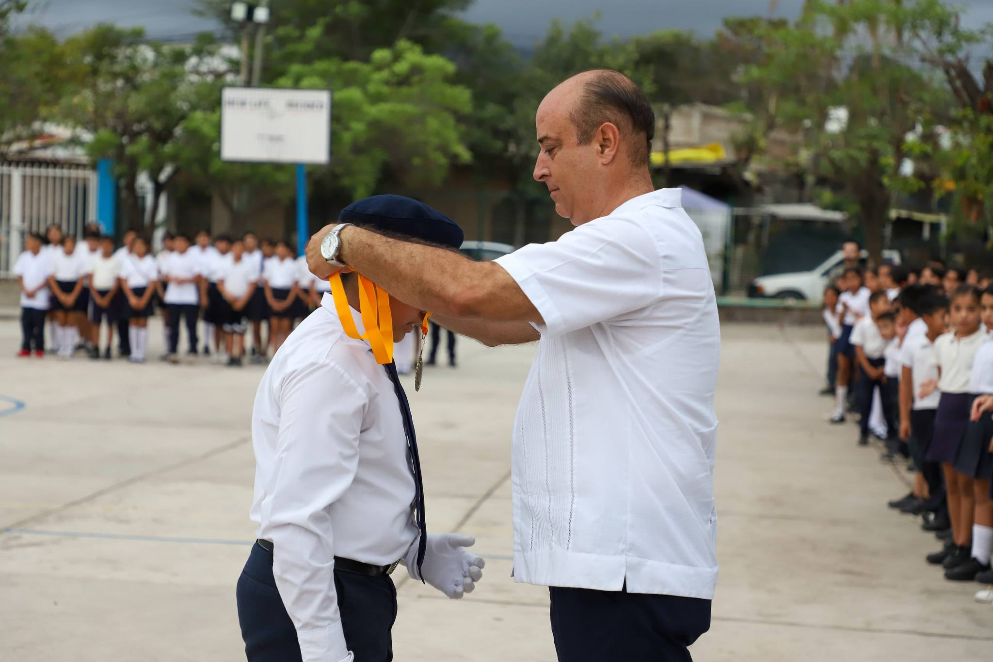 La tarde del pasado lunes, el presidente municipal interino, Francisco José Martínez Gil, encabezó la ceremonia de honores a la bandera en la escuela primaria urbana “José María Morelos y Pavón”, donde además escuchó algunas peticiones de los alumnos, padres de familias y maestros del plantel.