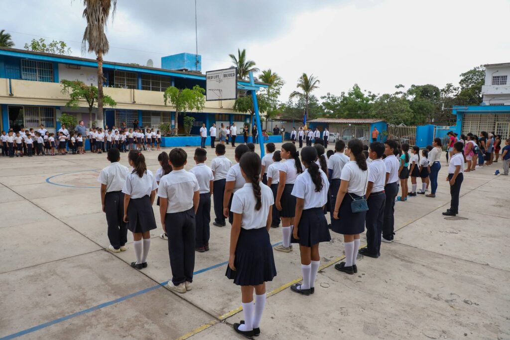 Acompañado por el director del centro educativo, Francisco Guzmán Quintero; el delegado municipal de esta demarcación, Marco Fuentes Galleros y Norma Leticia González, presidenta de la asociación de padres de familia, tras los correspondientes honores al lábaro patrio, el alcalde interino escucho en voz del alumno Iker Esquivel Carrillo González, del grupo de 6º “B”, algunas de las necesidades que presenta su escuela, para las que solicitó su apoyo.