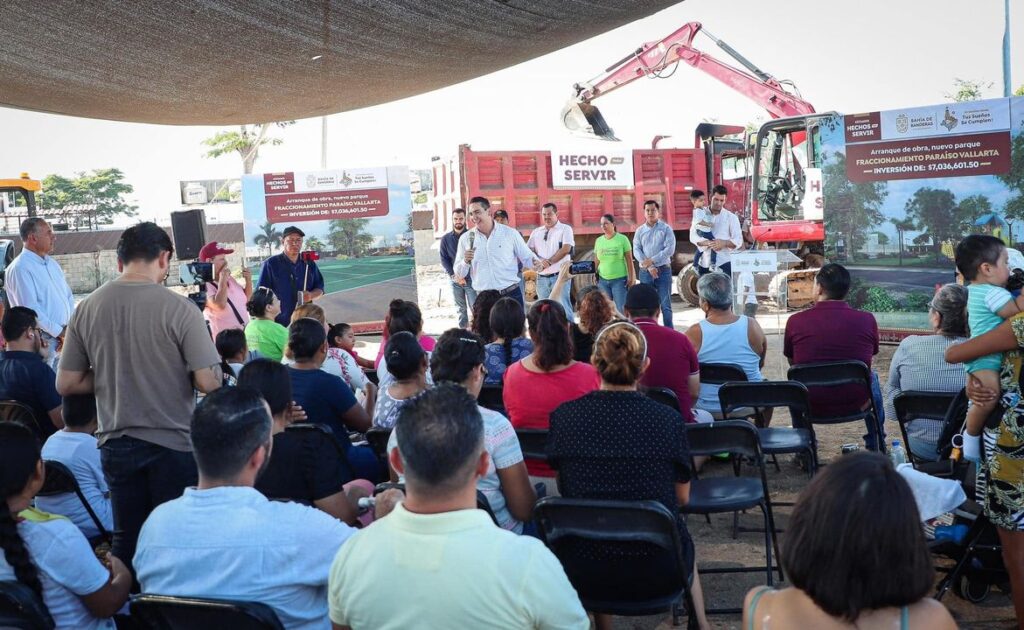 Este sábado, el presidente municipal de Bahía de Banderas, Héctor Javier Santana García, dio inicio a la construcción de un parque en el fraccionamiento Paraíso Vallarta, en San Clemente de Lima, marcando así su onceava obra en el municipio. Al evento asistieron regidores, directores municipales y decenas de habitantes del fraccionamiento, quienes celebraron el avance.