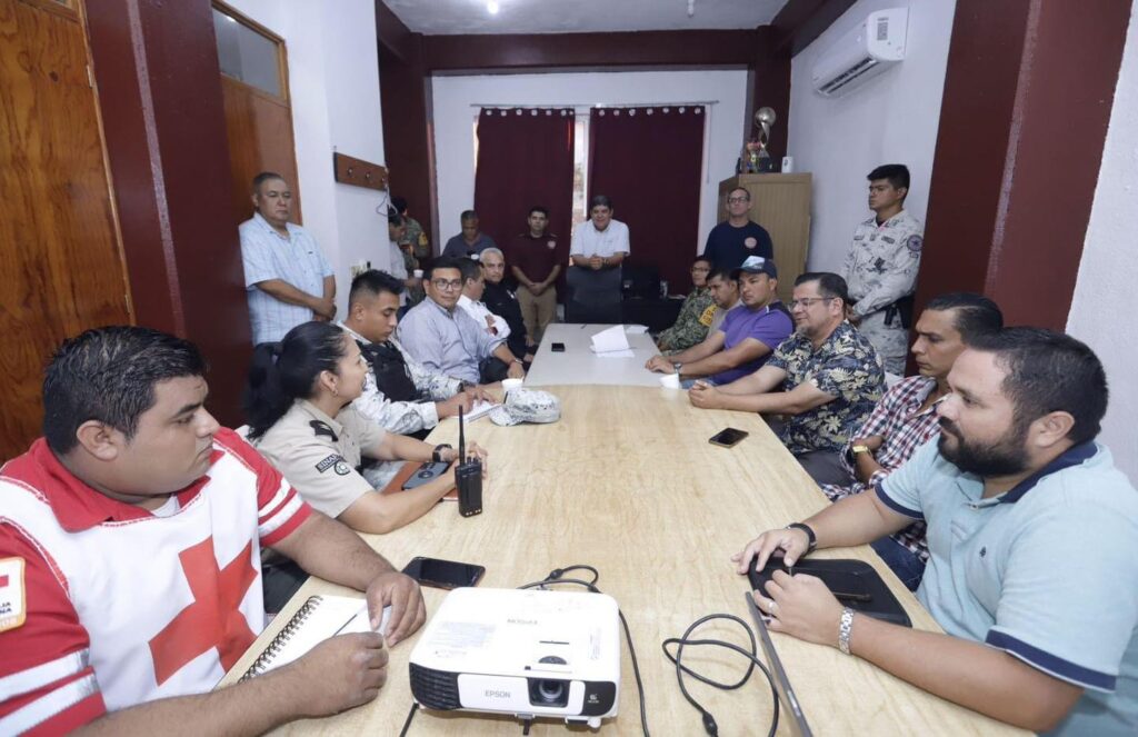 Integrantes del Consejo Municipal de Protección Civil, se reunieron para evaluar y dar seguimiento a la perturbación tropical que se localiza frente a las costas del Pacífico