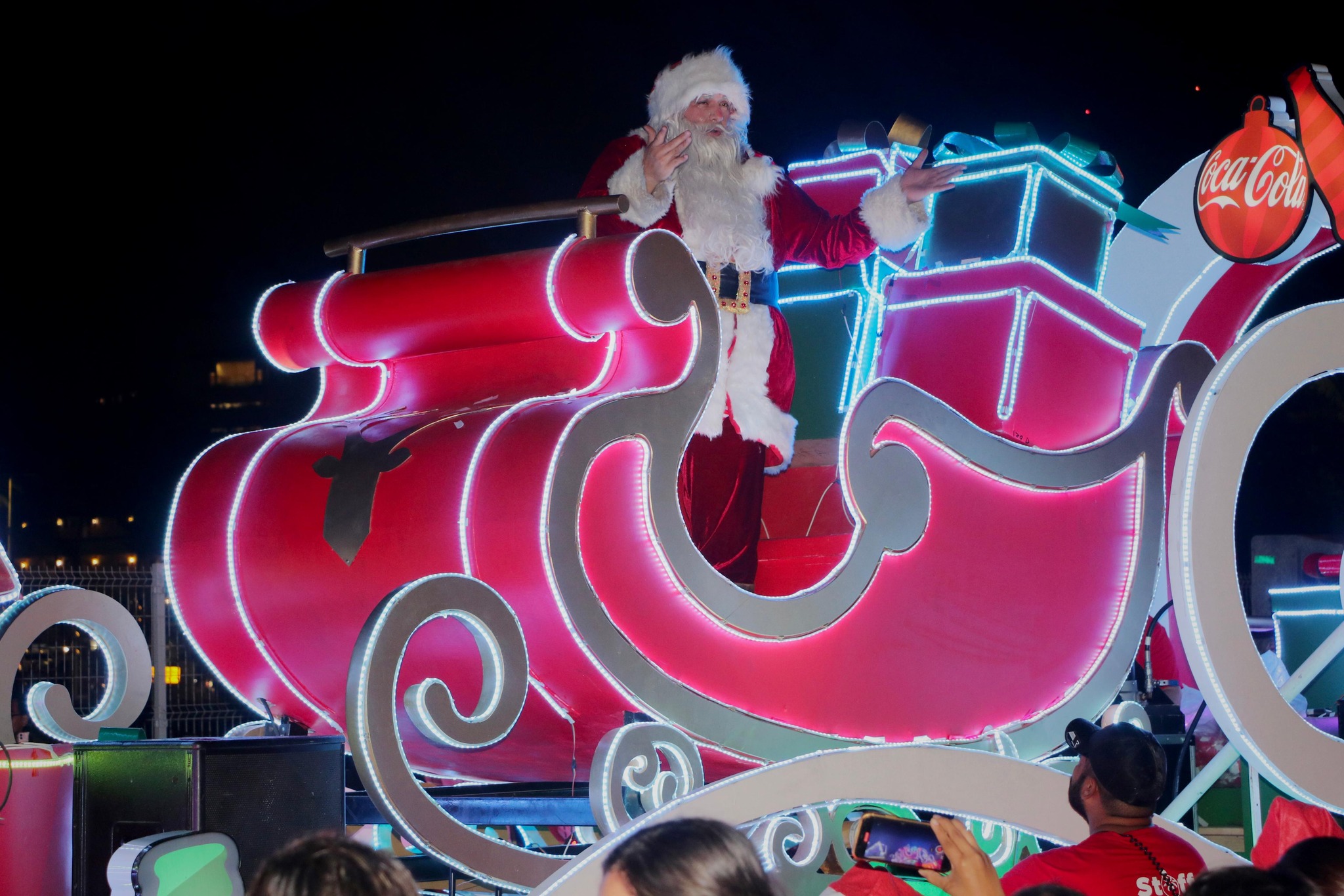 Decenas de familias presenciaron este viernes el recorrido de la Caravana Navideña de Coca Cola, en donde algunas avenidas de Puerto Vallarta se llenaron de luces, música y espectáculos que hicieron felices a todos, en especial a los más pequeños.