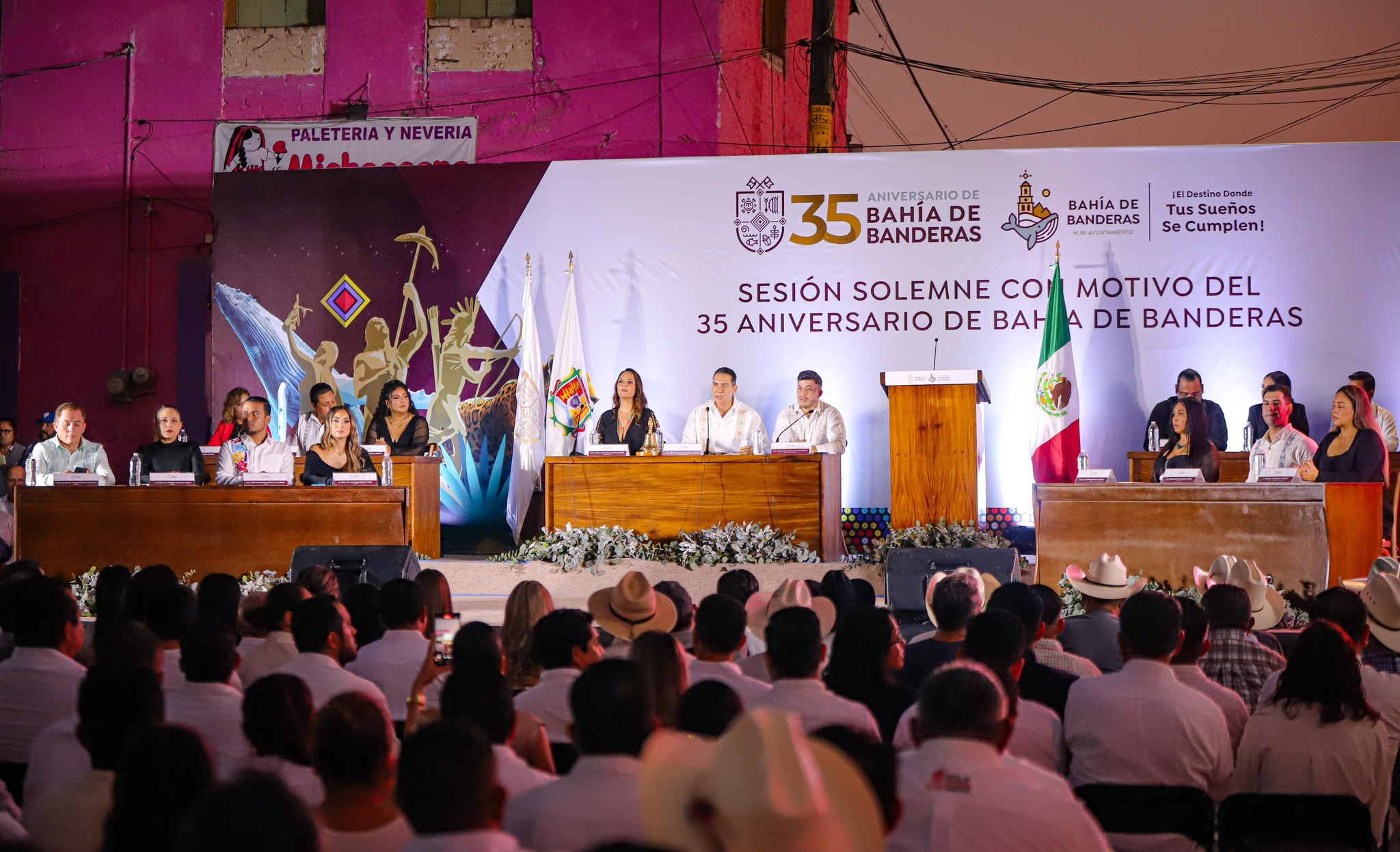 En una ceremonia histórica y llena de emotividad, Bahía de Banderas conmemoró su 35° aniversario como municipio con la Segunda Sesión Solemne encabezada por el presidente municipal Héctor Javier Santana García. El evento, realizado en Valle de Banderas, cuna de la lucha por la creación del municipio, reunió a autoridades, ciudadanos y distinguidas personalidades para recordar los logros del pasado, celebrar el presente y renovar el compromiso con el futuro.