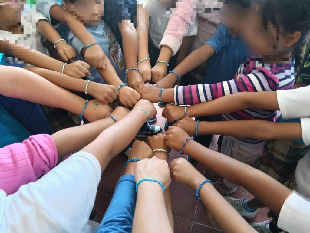 Quienes lograron un ambiente en el que las niñas y los niños de la escuela se sumaron a diversas actividades como la proyección y explicación de un video acerca del Autismo, la elaboración en equipo de diversas y creativas pulseras azules alusivas a la fecha, así como la divertida actividad de plasmar sus manos pintadas en color azul en un mural interno a la escuela.