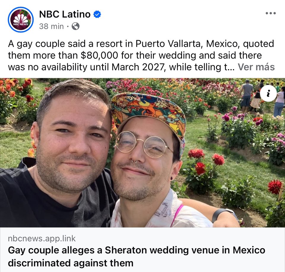 Pareja gay denuncia discriminación en el Hotel Sheraton de #PuertoVallarta, según NBC News, uno de los medios de comunicación mas importantes de Estados Unidos