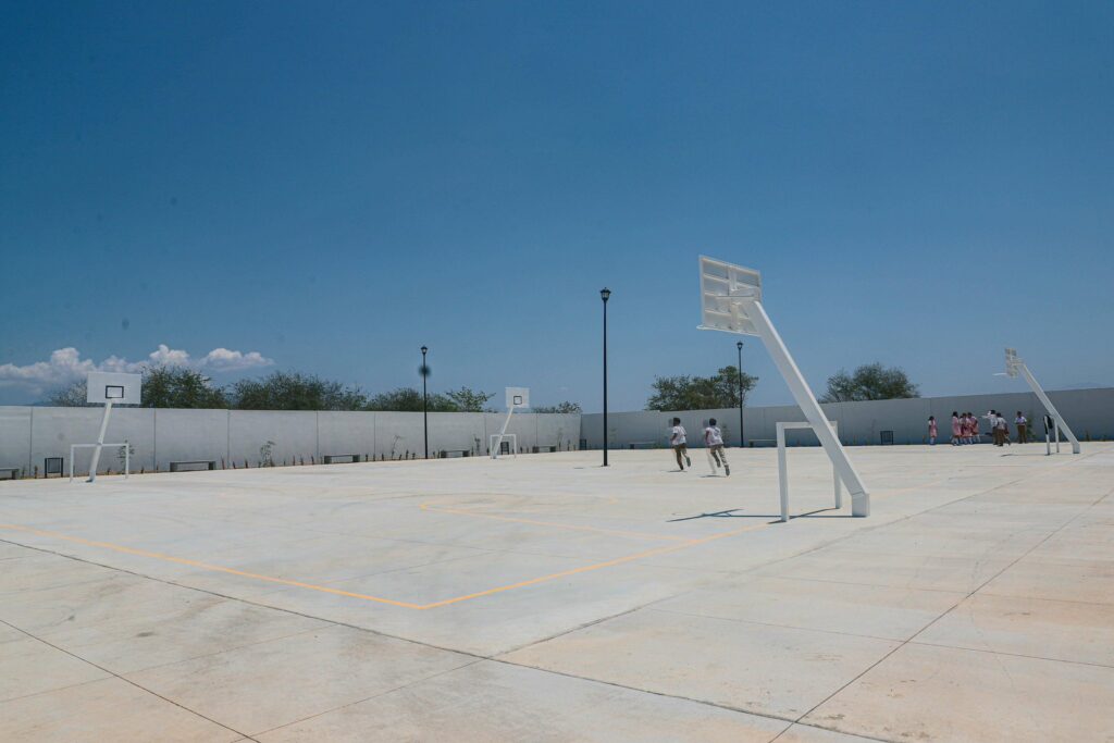 La escuela cuenta con 12 aulas, dirección, módulos de baños, área de intendencia con servicios propios, plaza cívica, cancha de usos múltiples, estacionamiento exclusivo, áreas verdes, pórtico, luminarias LED, protecciones, aires acondicionados en cada aula y barda perimetral, todo totalmente equipado.