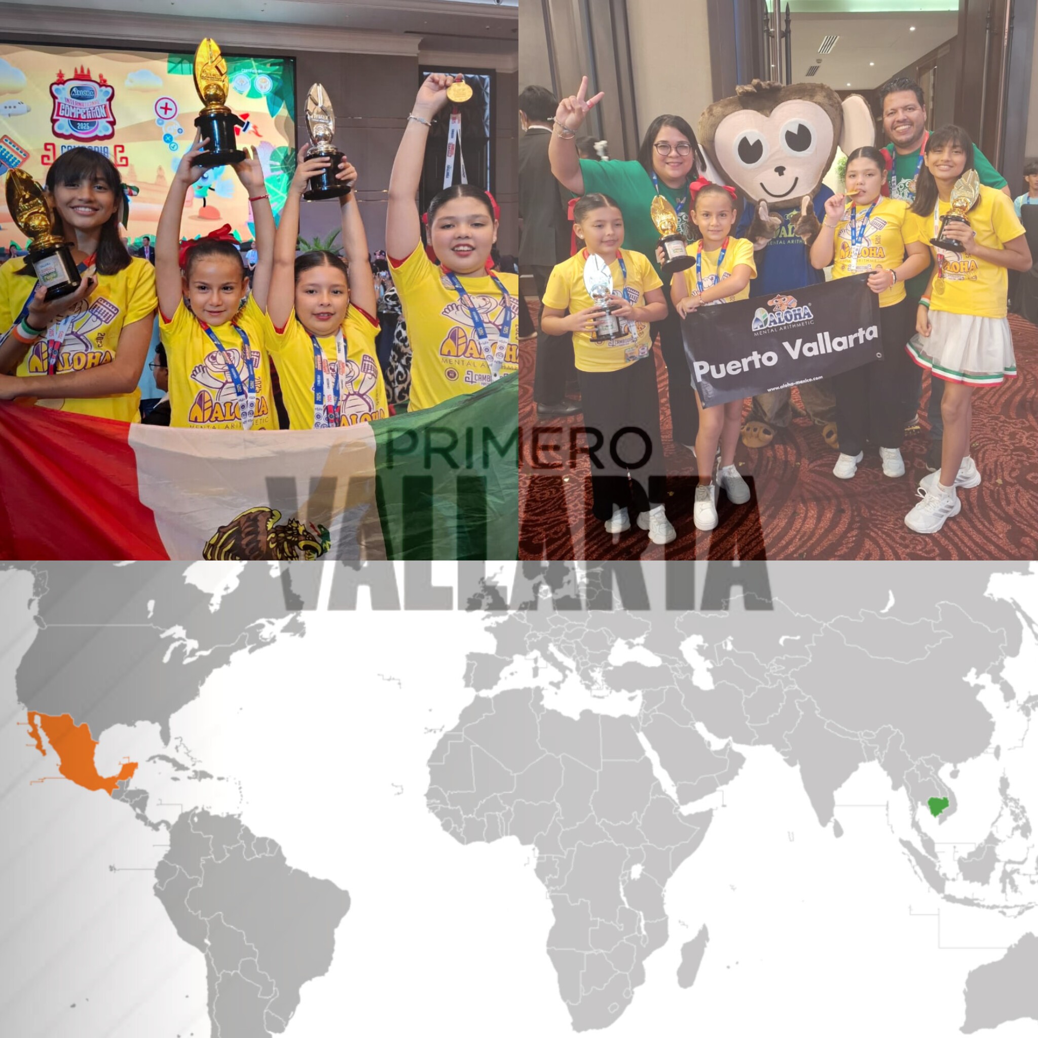 Cuatro talentosas niñas de Puerto Vallarta, Melody, Ivanna, Luciana y Aranza, representaron con orgullo a su ciudad en el Campeonato Internacional de Cálculo Mental de ALOHA, celebrado en Camboya. Más de 700 estudiantes de 17 países participaron en el concurso, y las niñas vallartenses destacaron con sus habilidades y precisión.