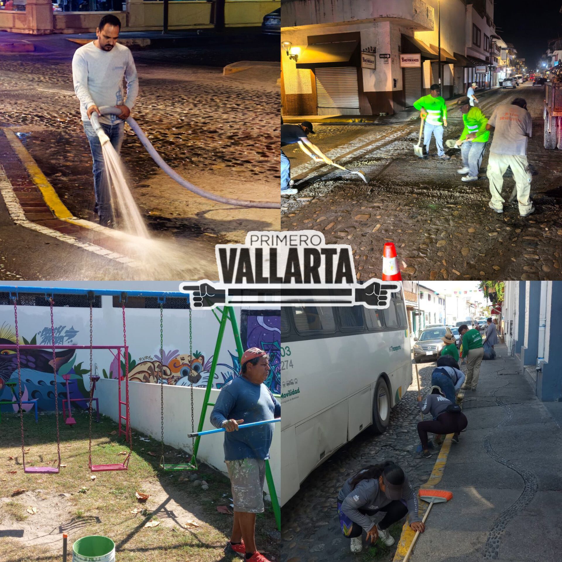 Los trabajos, que incluyen reparación de baches, limpieza de alcantarillas y balizado, buscan garantizar un entorno limpio y seguro para locales y visitantes, por instrucción del alcalde Luis Munguía. Detaca el lavado de las banquetas y superficies con mangueras, para quitar el olor a miados que normalmente persiste.