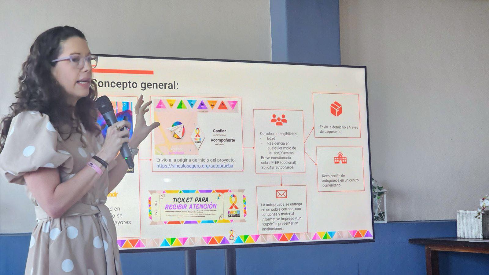 La intervención se desarrolla en Jalisco y Yucatán como estudio piloto, y está dirigida principalmente a personas usuarias de aplicaciones de citas que han tenido prácticas sexuales sin condón y no se han realizado previamente una prueba de VIH. El objetivo es ampliar la detección temprana, brindar acompañamiento adecuado y fortalecer la red de atención en salud sexual.