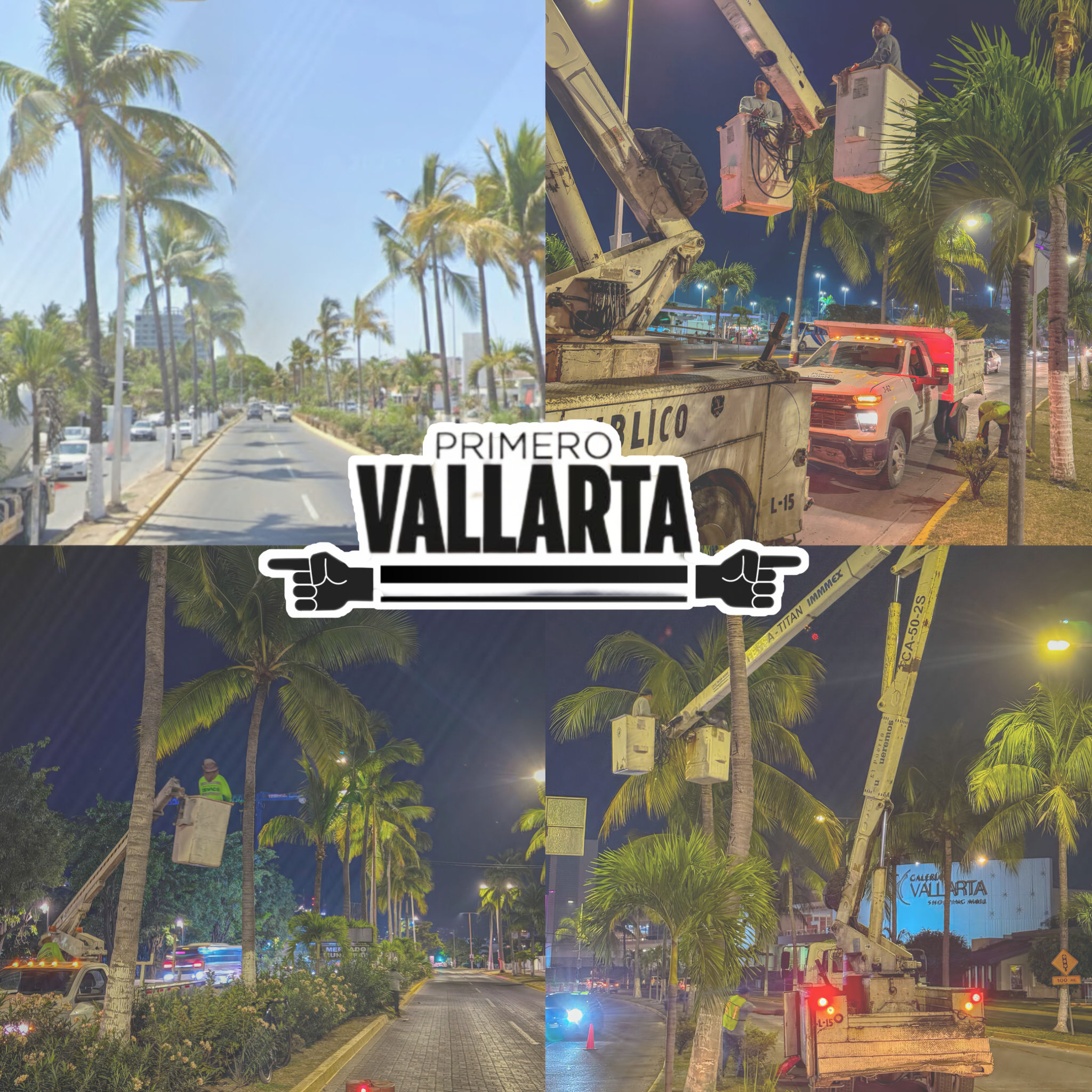 El Gobierno Municipal ha llevado a cabo una extensa jornada de mantenimiento en una de las arterias viales más importantes de la ciudad, la Avenida Francisco Medina Ascencio. El operativo consistió en la poda de palmeras a lo largo de los camellones centrales con un doble propósito: reforzar la seguridad vial y optimizar la imagen del puerto de cara a la temporada vacacional de invierno.