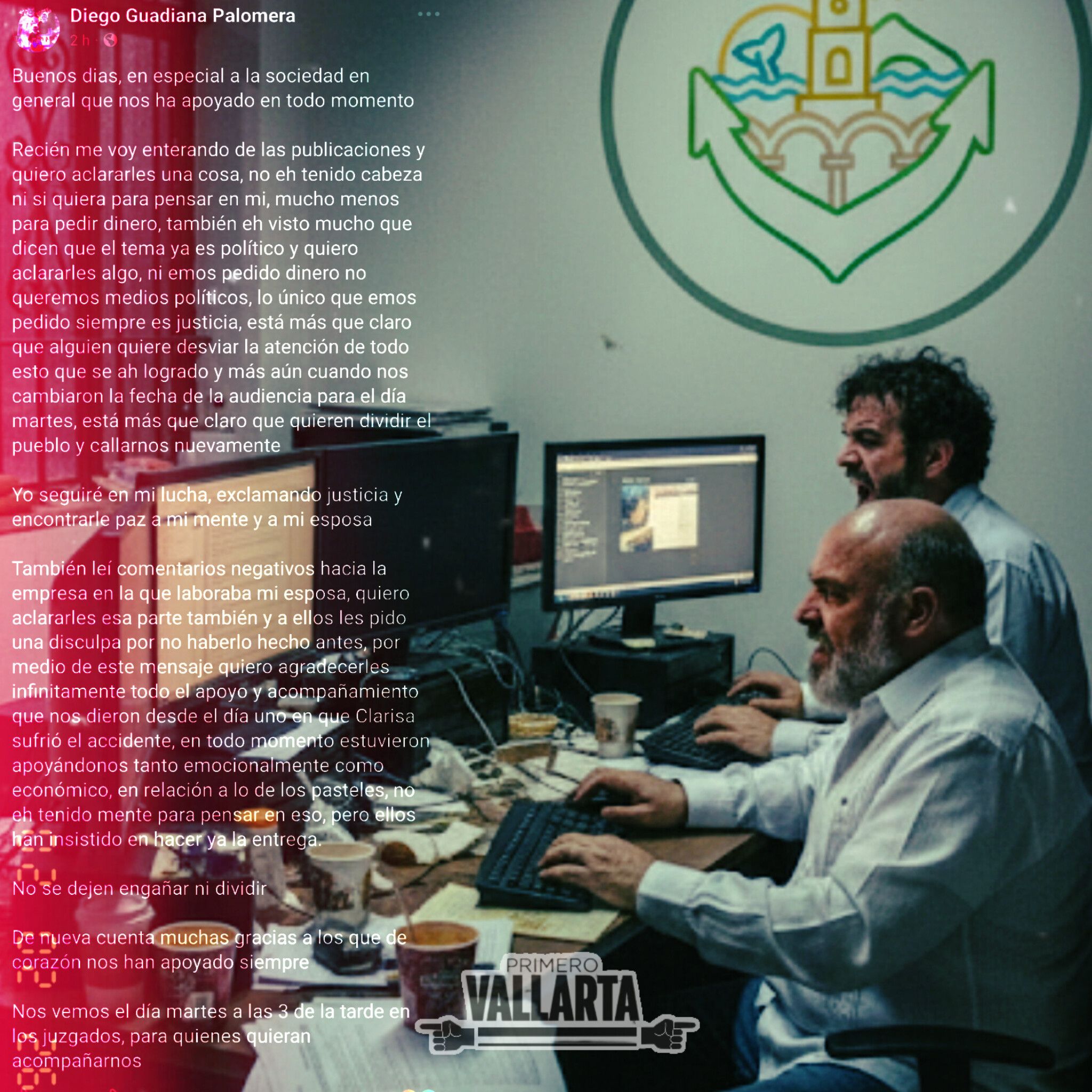 Además agradeció el apoyo real de la empresa donde laboraba su esposa, Pablova, la cual ha estado presente desde el primer día. Pero, en escencia, reivindicó que la protesta y los bloqueos fueron un apoyo de la sociedad de Puerto Vallarta para exigir justicia y no hubo ningún interés partidista detrás de este movimiento.