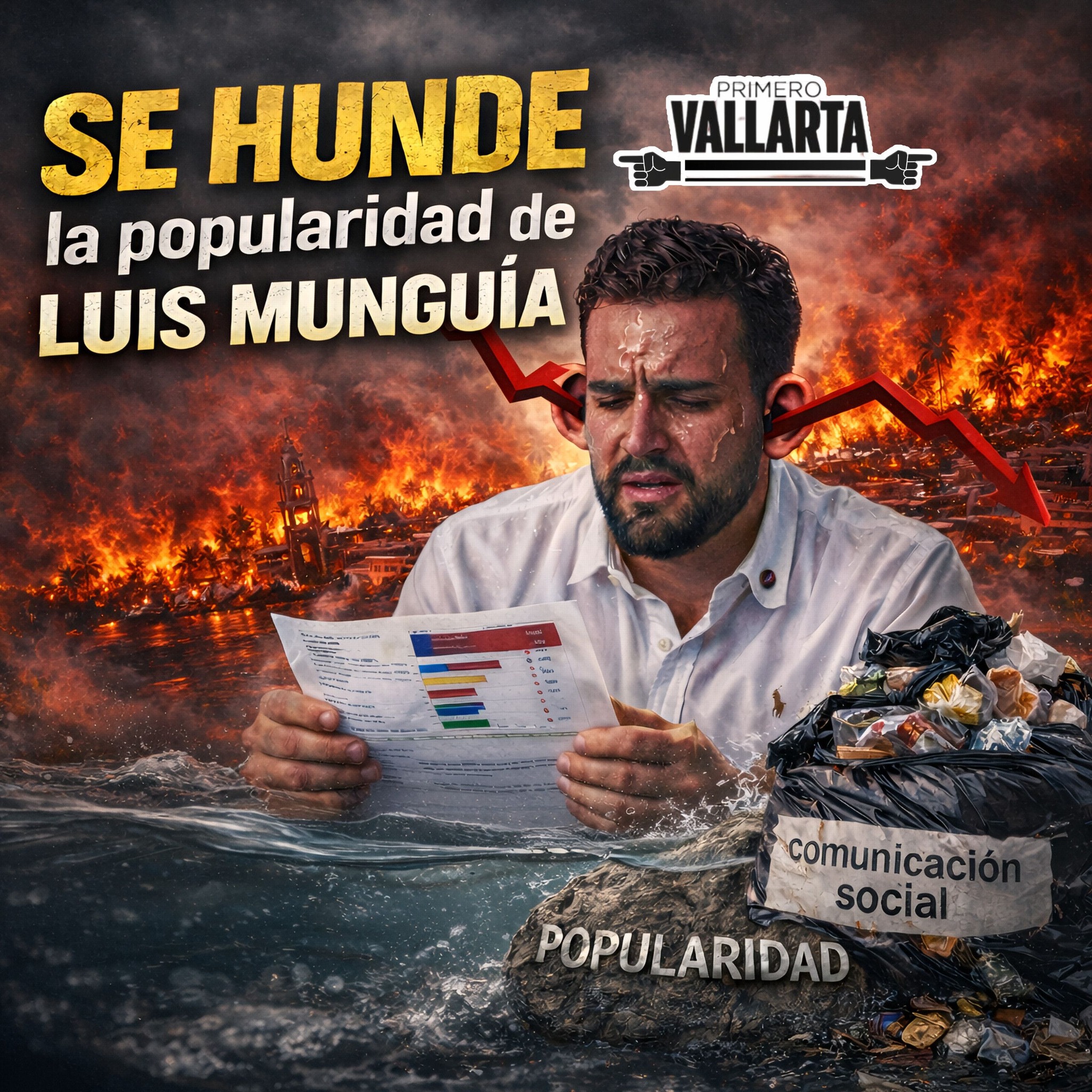 A juzgar por las propias encuestas que han circulado en las últimas semanas, al alcalde de Puerto Vallarta, Luis Ernesto Munguía, ya comenzó a llegarle la cuenta de cobro político de su administración. Y no precisamente en sobre cerrado, sino en números cada vez más difíciles de maquillar. Entre mediciones de aprobación, percepción de confianza e intención de voto por partido, el balance que dejan los sondeos —realizados por casas encuestadoras como Demoscopia Digital, Massive Caller, Rubrum y Mitofsky— es el de un gobierno que, a año y medio de haber arrancado, lejos de consolidarse, parece entrar en una pendiente descendente que ya no se puede esconder con publicaciones optimistas o rankings a modo.