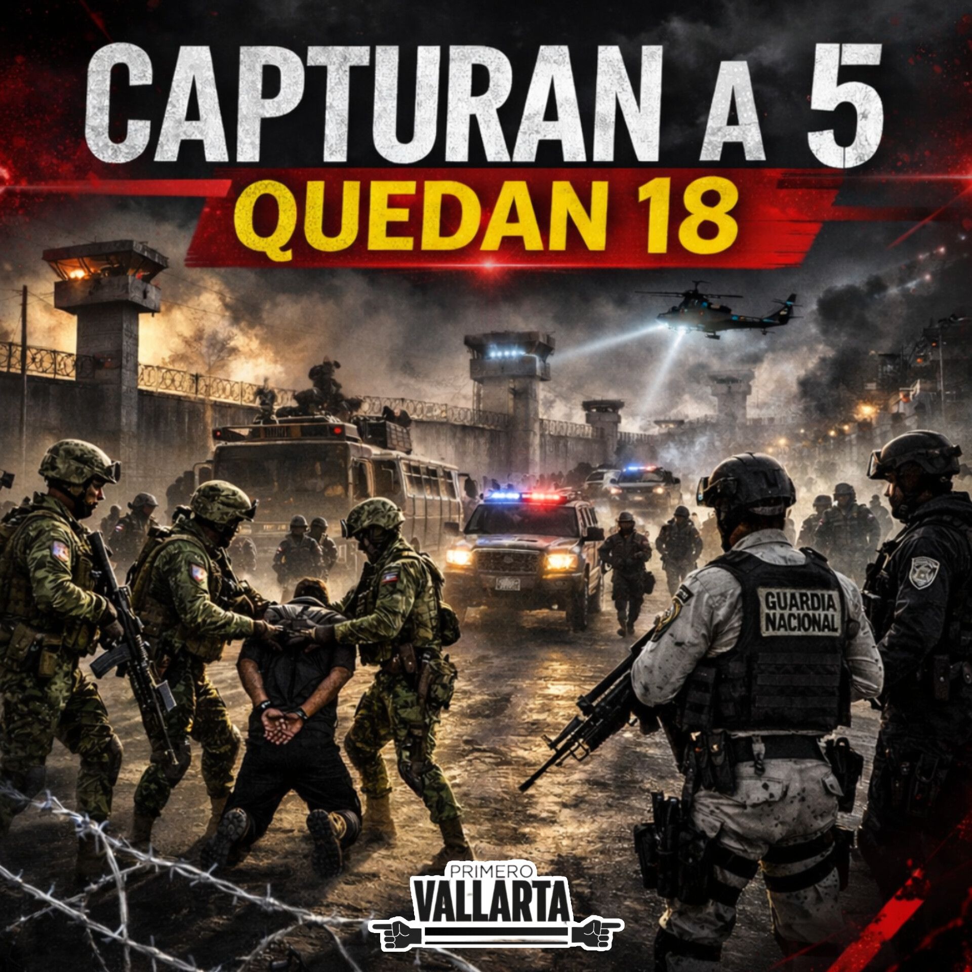 Autoridades de Jalisco confirmaron la recaptura de cinco de los 23 internos que escaparon del penal de Puerto Vallarta el pasado 22 de febrero, en hechos registrados tras un ataque armado contra el centro penitenciario. Entre los reaprehendidos se encuentra un hombre que purgaba una sentencia de 20 años de prisión por homicidio calificado y robo.