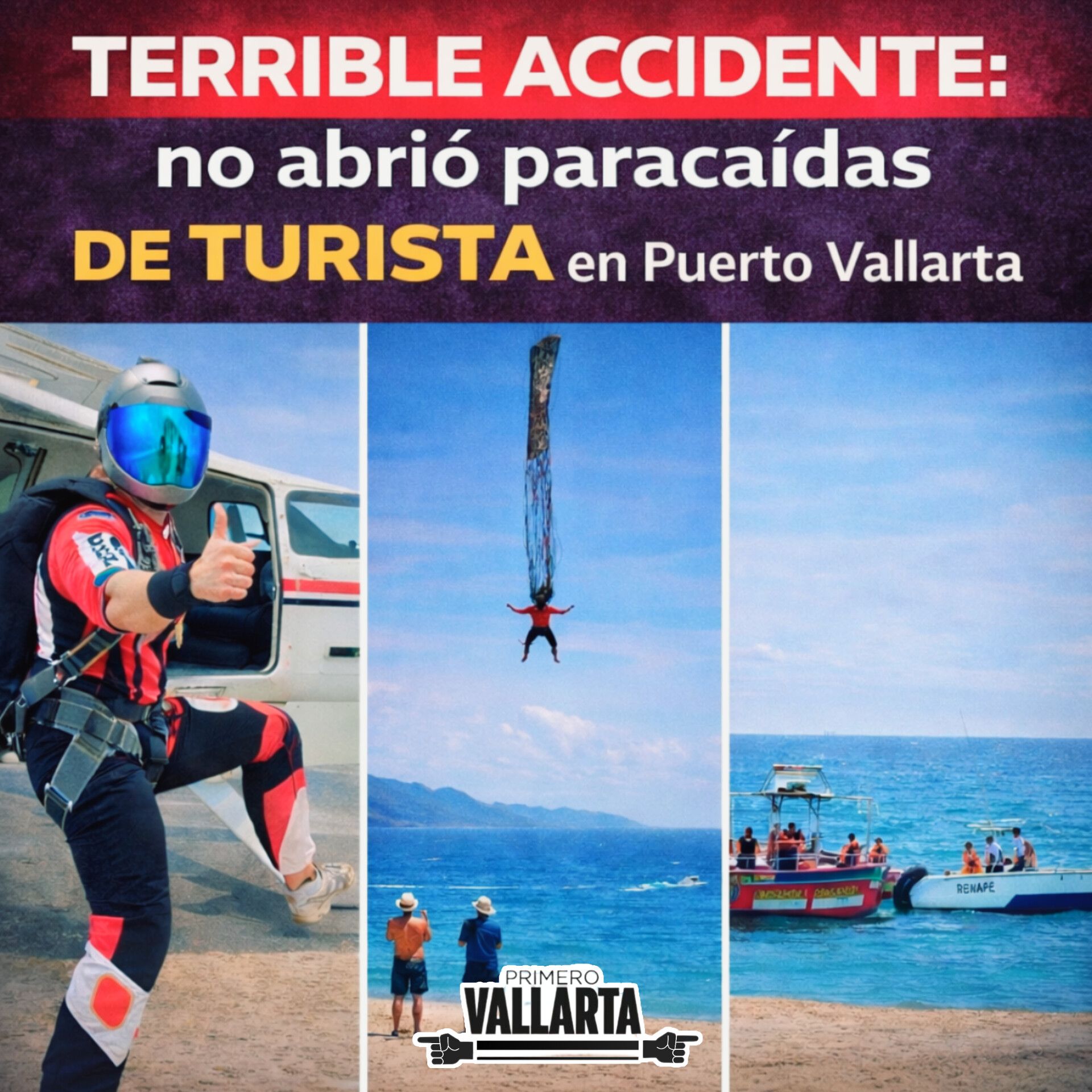 Un trágico incidente se registró en la zona marítima de Puerto Vallarta, donde una persona que realizaba un salto en paracaídas perdió la vida tras presentar una falla durante el descenso. De acuerdo con los primeros reportes, el equipo mochila no logró deslegarse de manera adecuada, lo que provocó que el paracaidista cayera a gran velocidad sobre el agua.